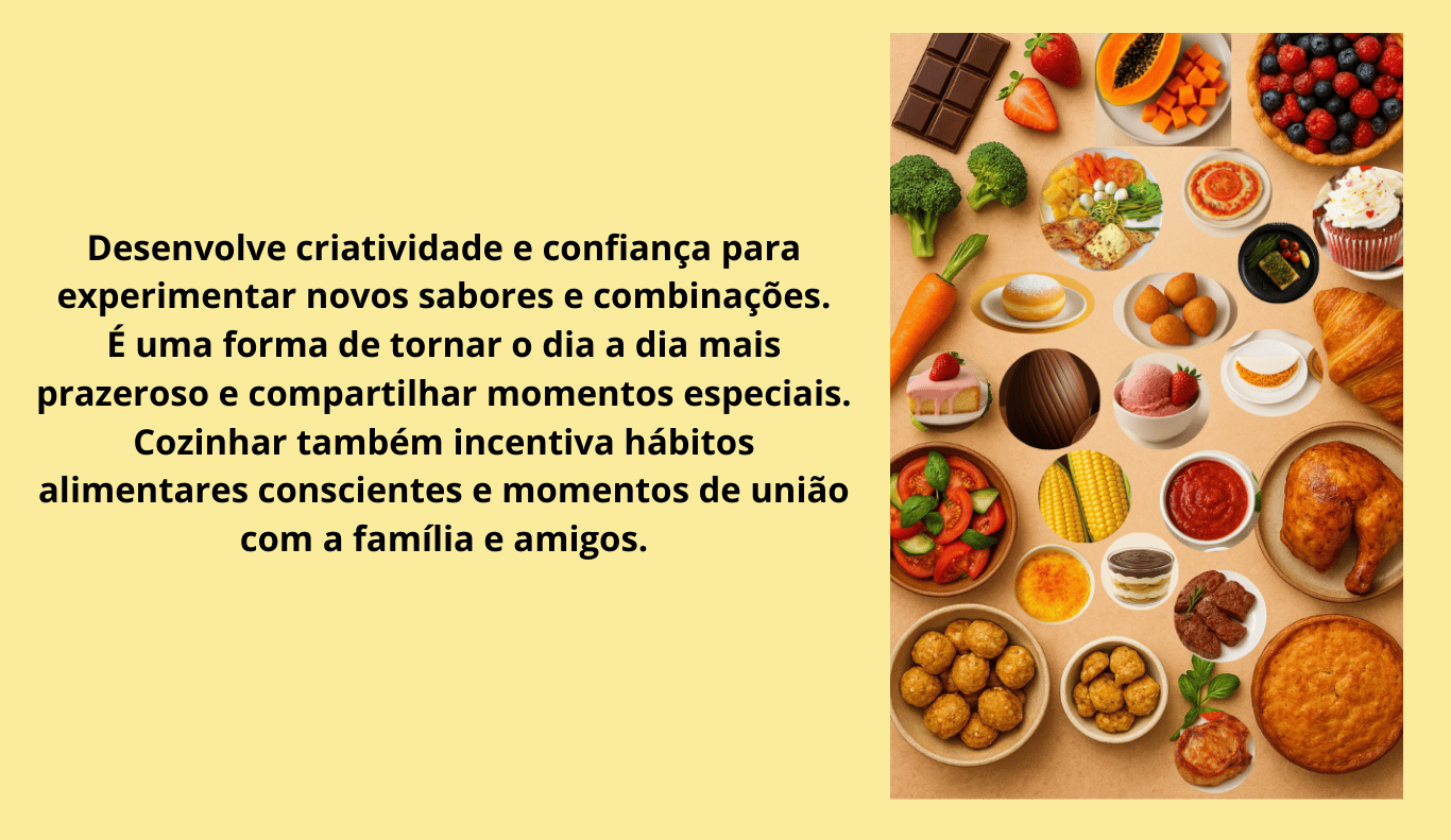 "Aprender a cozinhar traz liberdade, economia e mais saúde no dia a dia. Além disso, é uma forma de criar momentos especiais à mesa."